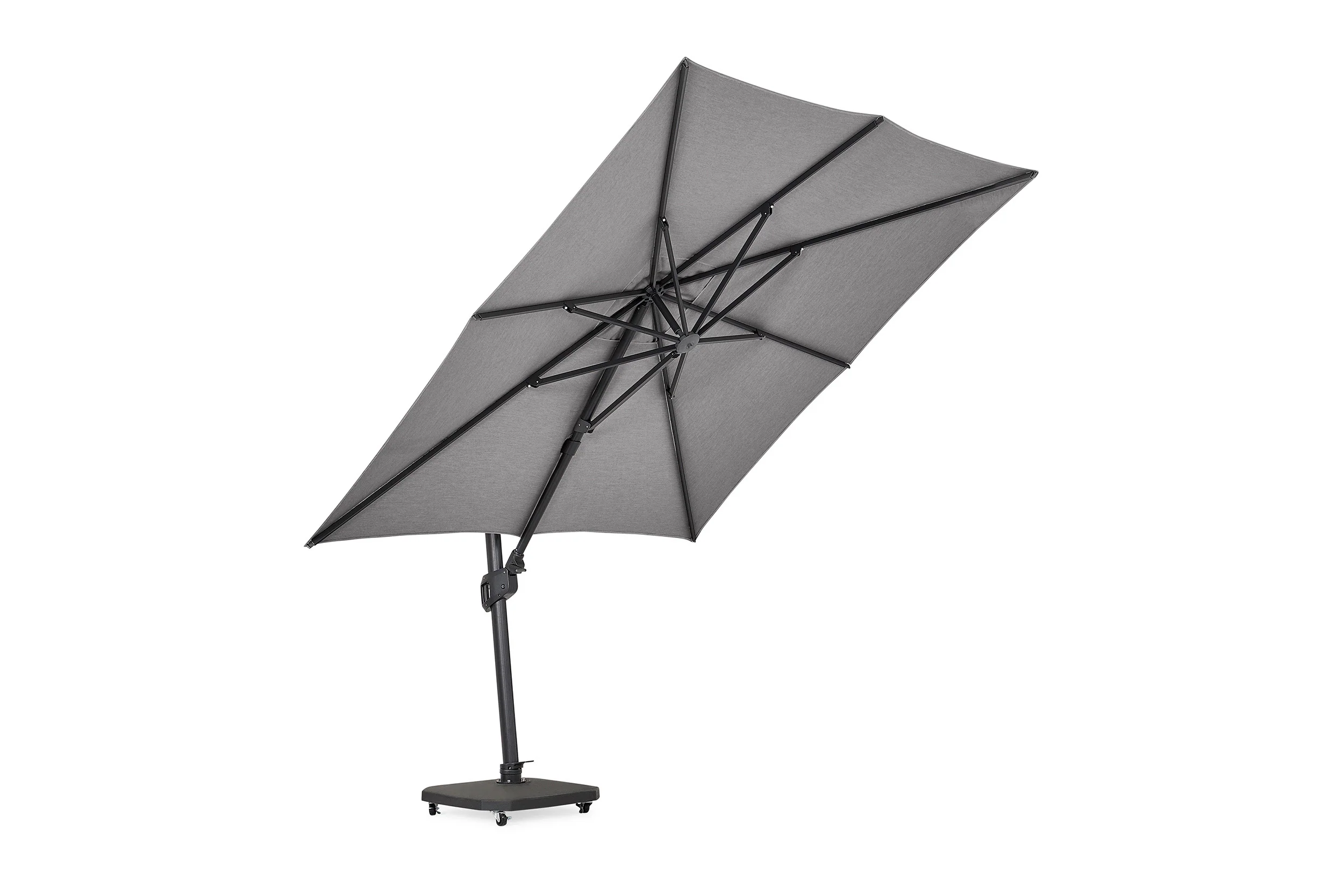 Add a touch of shade on long hot days, or shelter from light showers with the luxurious and robust Palmoli Square Parasol. Available with a 360 rotation and angled stop points for a truly customisable canopy.