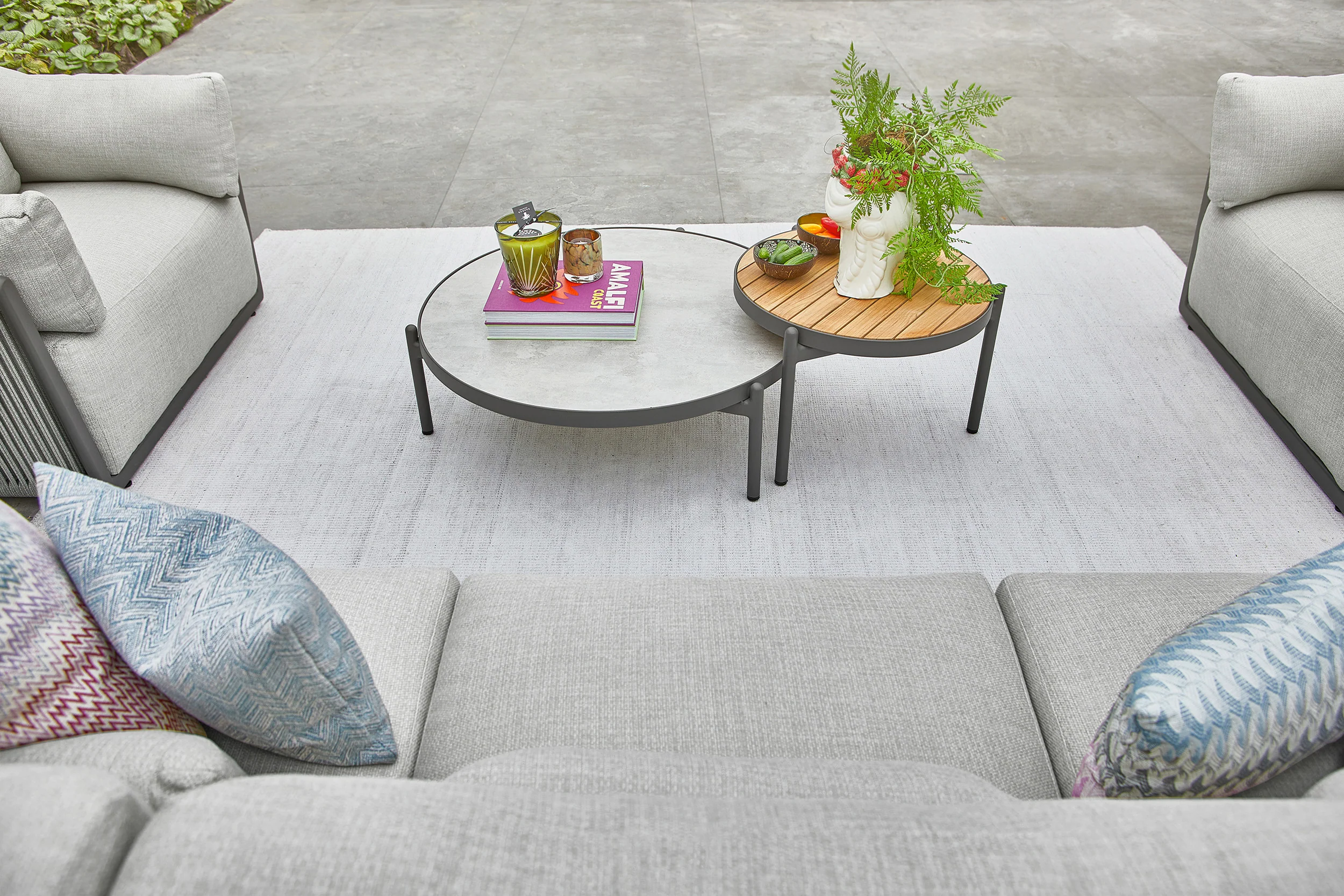 This set in Matt Royal Grey Aluminium Frame with a Carbon Grey Rope and Soft Grey Mixed weave cushions is the ultimate example of optimal comfort and elegance.